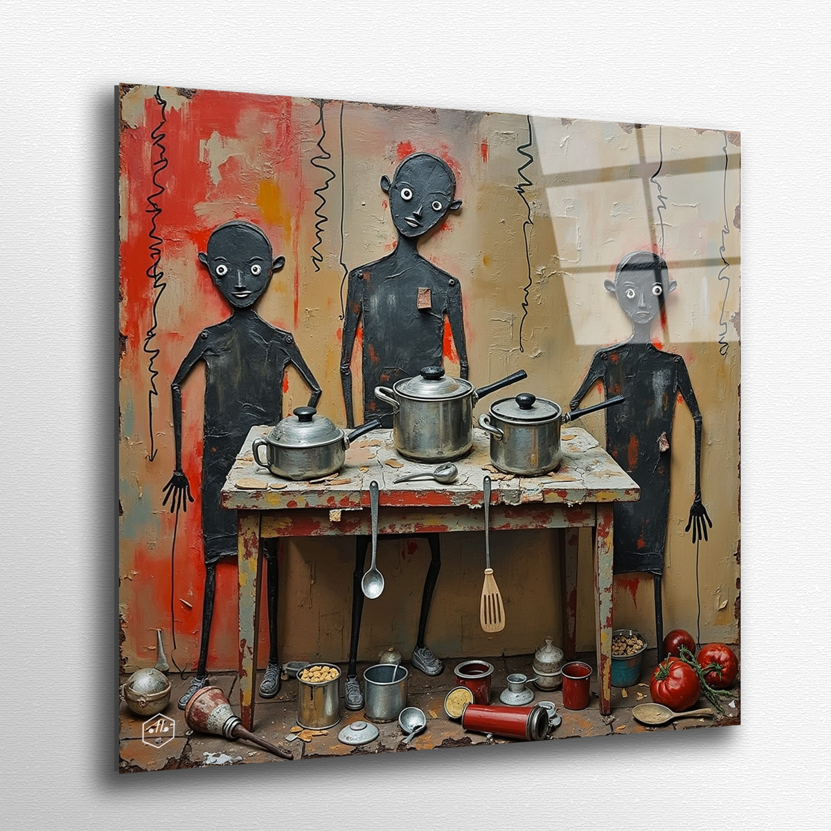 Domestic DADA dismantles the clichés of family life through absurdity. Oil impasto, collage scraps, and childlike doodles turn routine into grotesque carnival. These eight works form a trash theatre of the everyday—chaotic, playful, and irreverent.